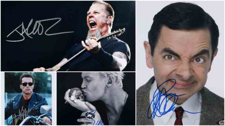 Una dintre cele mai impresionante piese din colecția de autografe este fotografia care îl ilustrează pe James Hetfield, solistul trupei Metalica. Piesa care poartă semnătura olografă a muzicianului are prețul de pornire de doar 200 de euro și este însoțită de certificatul de autenticitate.
